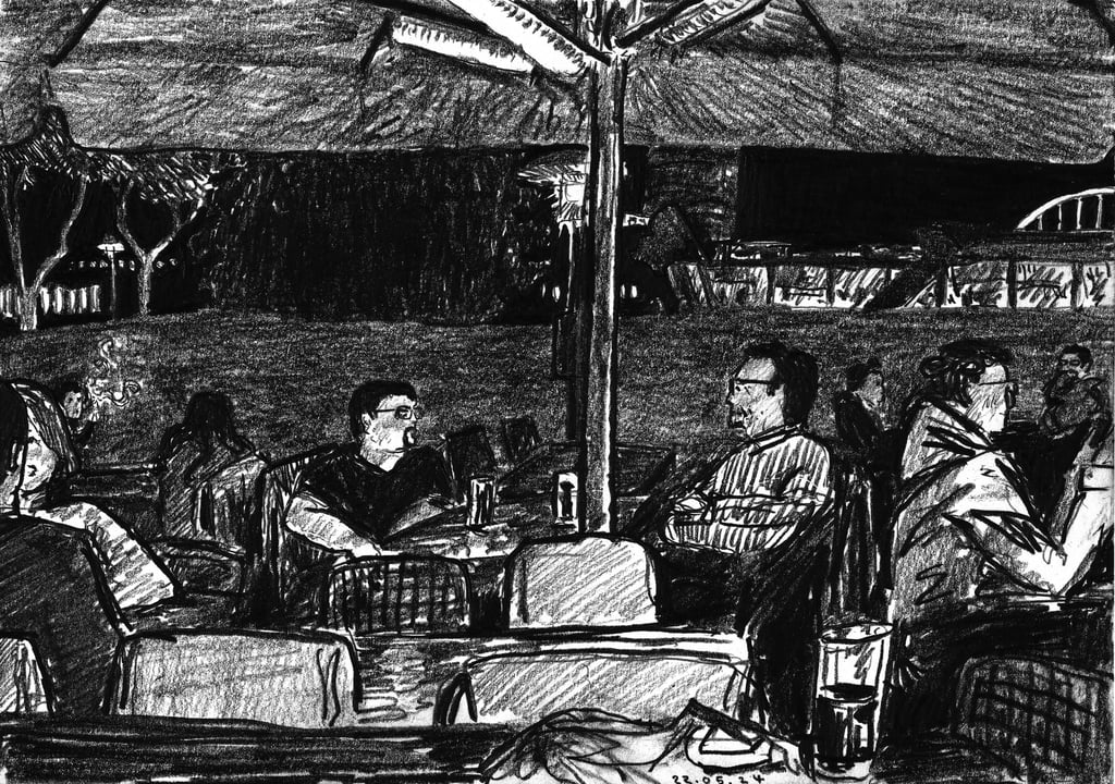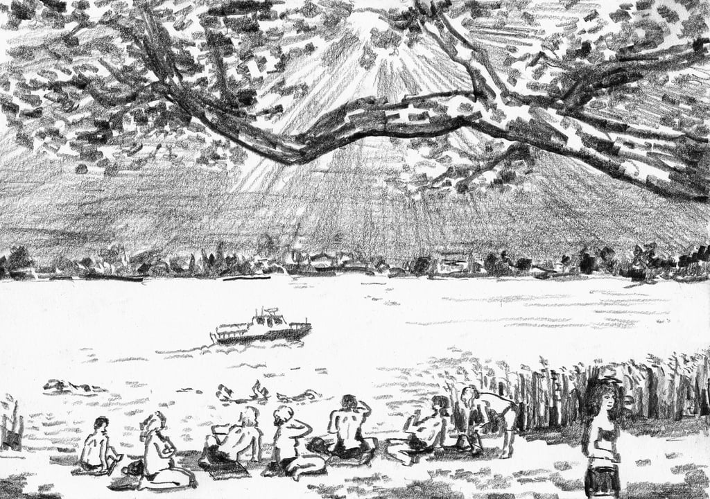 Filzstift, Ölkreide und Pastellkreide auf Papier